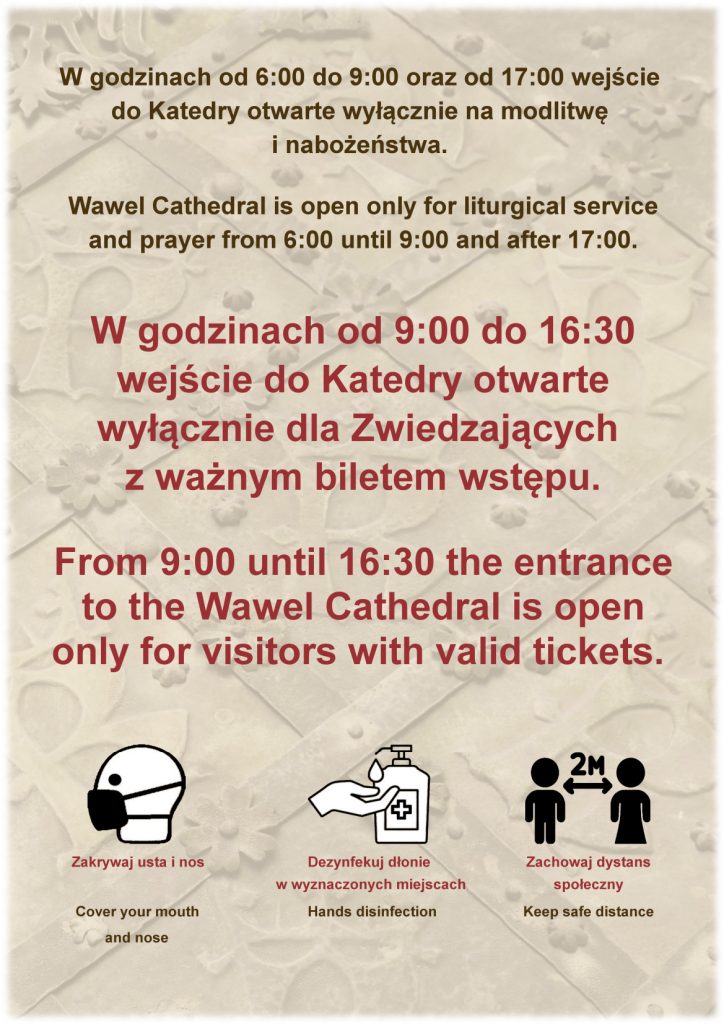 Holy Mass at Wawel Cathedral: Sunday and holidays 7.00 am Holy Mass at the relics of St Jadwiga 8.30 am Holy Mass in Latin at the relics of St Stanislaus 10.00 am Holy Mass at the Coronation Altar with choir 11.30 am Holy Mass at the Coronation Altar 4:30 pm (November – March) 5:30 pm […]