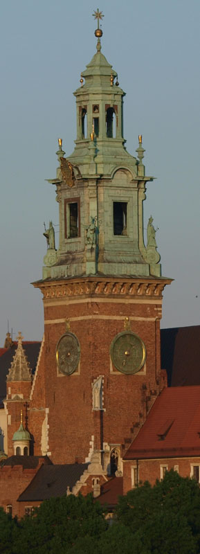 Wspaniały, zachowany do dzisiaj, pokrywający Wieżę Zegarową barokowy hełm został wykonany w 1715 roku. Umieszczone są w nim dwa dzwony zegarowe (gongi) wybijające godziny i kwadranse.